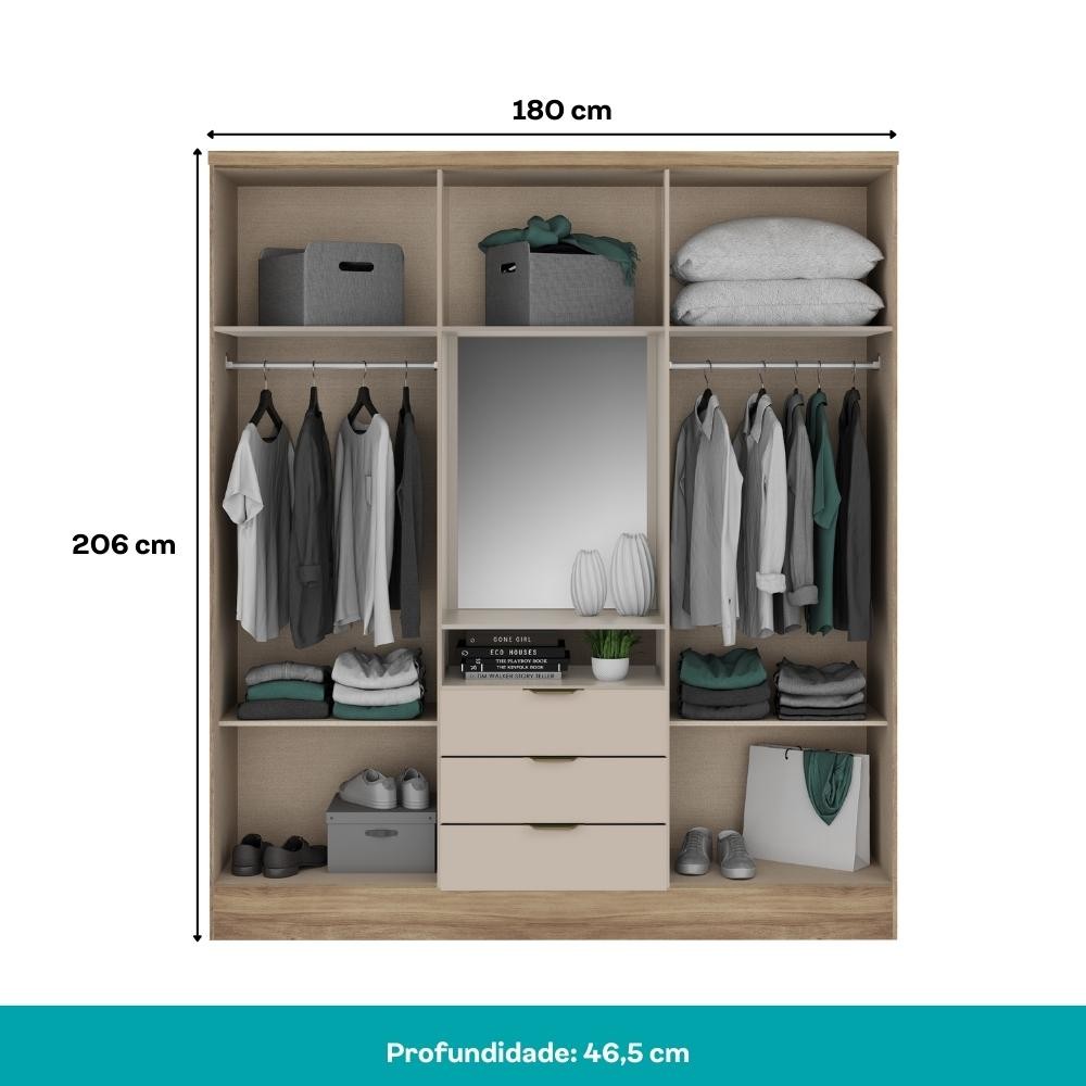 O Guarda-Roupa Aspen 1152é ideal para traduzir sua essência e personalidade em seu quarto. Com um design moderno e linhas simples, este guarda-roupa se adapta facilmente a diversos estilos de decoração. Suas 6 portas de abrir, divididas em 3 partes, proporcionam acesso fácil e organização eficiente. O espelho central adiciona praticidade ao ambiente, enquanto as 3 gavetas externas oferecem espaço extra para pequenos objetos. Internamente, conta com amplo espaço para acomodar roupas e acessórios, garantindo organização total. Fabricado com MDP de alta qualidade, possui acabamento em pintura UV, garantindo durabilidade e resistência. O rodapé estrutural e os puxadores em ABS completam o visual moderno e funcional deste guarda-roupa. Renove seu quarto e desfrute de um ambiente confortável e aconchegante. Especificações do Guarda Roupa: Medidas totais: Largura:180 cm | Altura:206 cm | Profundidade:46,5 cm Peso total:103,2 Kg Garantia: Os produtos possuem garantia de 03 meses (se utilizado em condições normais), contra defeito de fabricação, ou componentes utilizados. Esta garantia não cobre defeitos por uso inadequado ou excessivo, falta de cuidados e desbotamento natural dos revestimentos. Condições de perda da garantia: - Mau uso ou manuseio incorreto. - Desbotamento causado pela exposição direta da luz solar. - Danos causados por agentes da natureza, como inundações ou acidentes de qualquer espécie. - Uso indevido de produtos abrasivos para realizar a limpeza. Recomendações para uma boa conservação: - Dicas para limpeza e conservação do seu produto, você encontrará no esquema de montagem que o acompanha. Informações importantes: - Trabalhamos para apresentar imagens fiéis ao produto real. Porém, as cores podem sofrer variações de acordo com o monitor, iluminação do ambiente em que se encontram e até por sua percepção visual comparado ao ambiente residencial. - Desta forma, as imagens são meramente ilustrativas. - Todos os objetos decorativos não acompanham o produto. - O produto é enviado desmontado. - O produto acompanha manual com instruções para a montagem. - A empresa Móveis Carraro não realiza o serviço de montagem. PERGUNTAS FREQUENTES - Existem outras cores disponíveis? Sim, este produto possui outras cores disponíveis em outros anúncios. - Vocês entregam para todas as regiões do Brasil? De que forma é feita a entrega? Sim, entregamos para todas as regiões do Brasil. E a entrega é realizada por transportadoras parceiras. - Este produto é novo ou usado? Todos os nossos produtos são novos. E acompanham nota fiscal e certificado de garantia. - Recebo o produto montado? Não, este produto é enviado desmontado. Junto com ele é enviado manual com instruções para a montagem. - Vocês realizam a montagem do produto? Não possuímos o serviço de montagem.