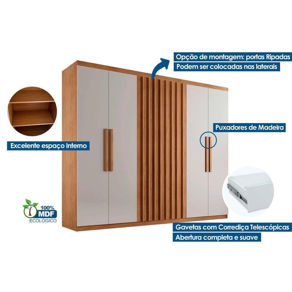 Guarda Roupa Casal 6 Portas e 2 Gavetas Cairo Naturale/Off White - Rufato