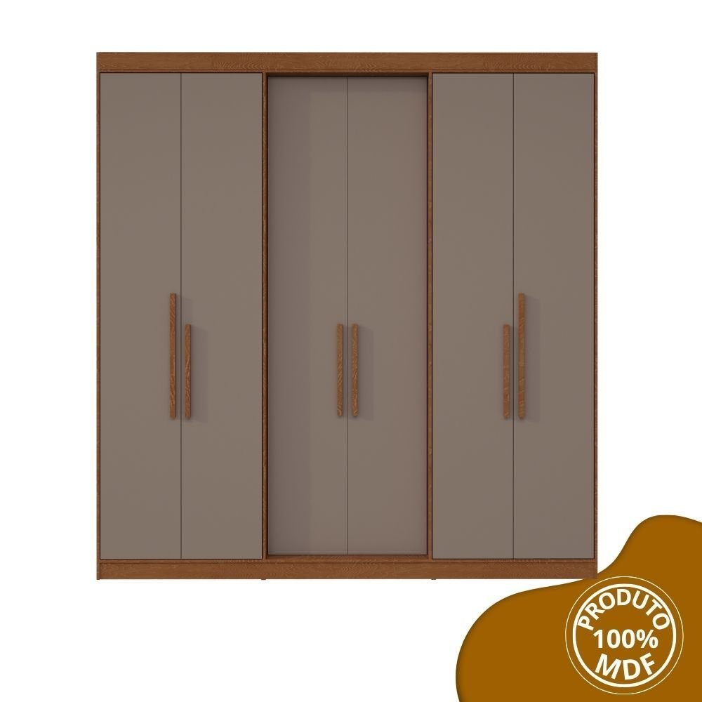 Guarda Roupa Casal 6 Portas Lugano MDF Carvalho Vermontt/Fendi