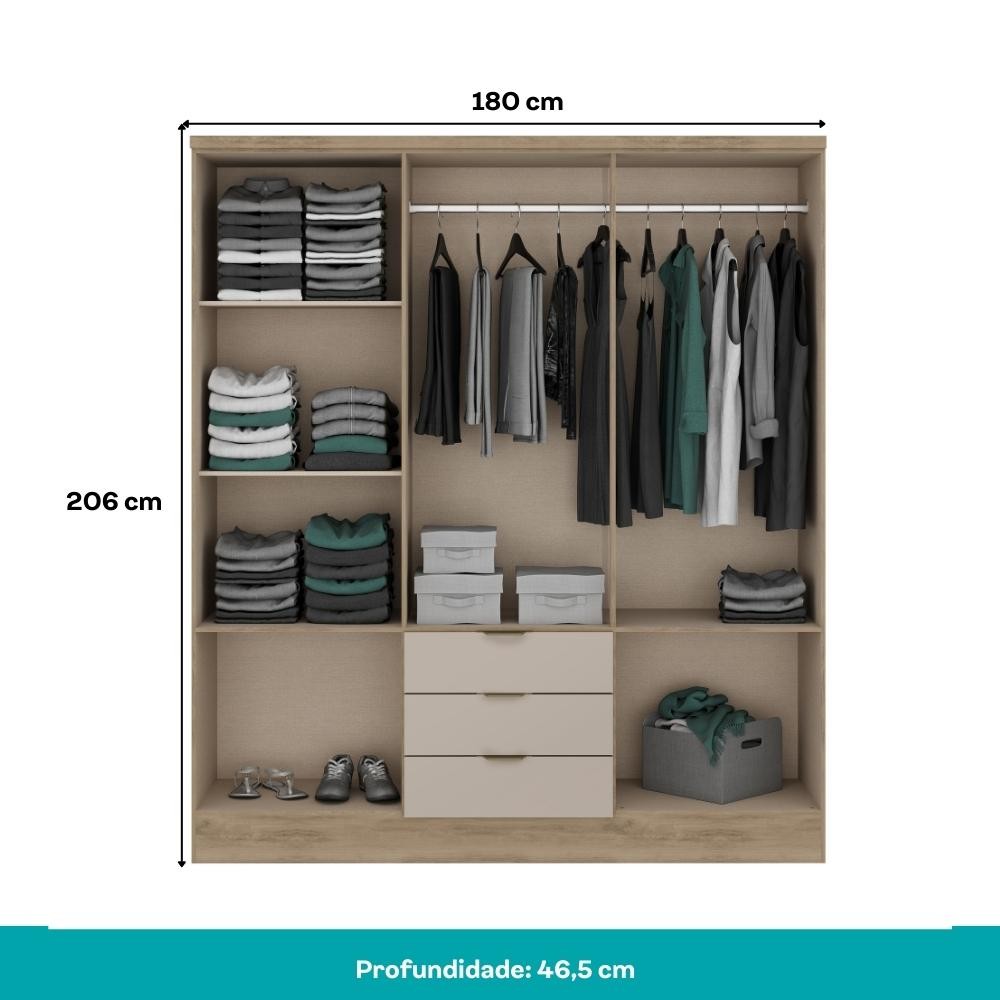 O Guarda-Roupa Troy 1151, com um design moderno e versátil, se torna perfeito para compor qualquer ambiente. Seu amplo espaço interno oferece uma configuração inteligente, com 2 cabideiros em alumínio e 5 prateleiras, proporcionando organização para suas roupas e acessórios. Com 6 portas de giro, o acesso ao guarda-roupa é facilitado, enquanto as 3 gavetas externas com corrediças metálicas garantem praticidade no dia a dia. Fabricado com MDP de 12mm e 15mm, possui acabamento em pintura UV e detalhes texturizados, conferindo um toque de elegância ao produto. O rodapé em MDP de 18mm proporciona maior estruturação e durabilidade. Os puxadores em ABS complementam o visual moderno. Internamente, o acabamento Linho adiciona um charme extra. Renove seu quarto unindo funcionalidade e estilo em um único produto. Especificações do Guarda Roupa: Medidas totais: Largura:180 cm | Altura:206 cm | Profundidade:46,5 cm Peso total:90,6 Kg Garantia: Os produtos possuem garantia de 03 meses (se utilizado em condições normais), contra defeito de fabricação, ou componentes utilizados. Esta garantia não cobre defeitos por uso inadequado ou excessivo, falta de cuidados e desbotamento natural dos revestimentos. Condições de perda da garantia: - Mau uso ou manuseio incorreto. - Desbotamento causado pela exposição direta da luz solar. - Danos causados por agentes da natureza, como inundações ou acidentes de qualquer espécie. - Uso indevido de produtos abrasivos para realizar a limpeza. - Decurso do prazo estabelecido. Recomendações para uma boa conservação: - Dicas para limpeza e conservação do seu produto, você encontrará no esquema de montagem que o acompanha. Informações importantes: - Trabalhamos para apresentar imagens fiéis ao produto real. Porém, as cores podem sofrer variações de acordo com o monitor, iluminação do ambiente em que se encontram e até por sua percepção visual comparado ao ambiente residencial. - Desta forma, as imagens são meramente ilustrativas. - Todos os objetos decorativos não acompanham o produto. - O produto é enviado desmontado. - O produto acompanha manual com instruções para a montagem. - A empresa Móveis Carraro não realiza o serviço de montagem. PERGUNTAS FREQUENTES - Existem outras cores disponíveis? Sim, este produto possui outras cores disponíveis em outros anúncios. - Vocês entregam para todas as regiões do Brasil? De que forma é feita a entrega? Sim, entregamos para todas as regiões do Brasil. E a entrega é realizada por transportadoras parceiras. - Este produto é novo ou usado? Todos os nossos produtos são novos. E acompanham nota fiscal e certificado de garantia. - Recebo o produto montado? Não, este produto é enviado desmontado. Junto com ele é enviado manual com instruções para a montagem. - Vocês realizam a montagem do produto? Não possuímos o serviço de montagem.