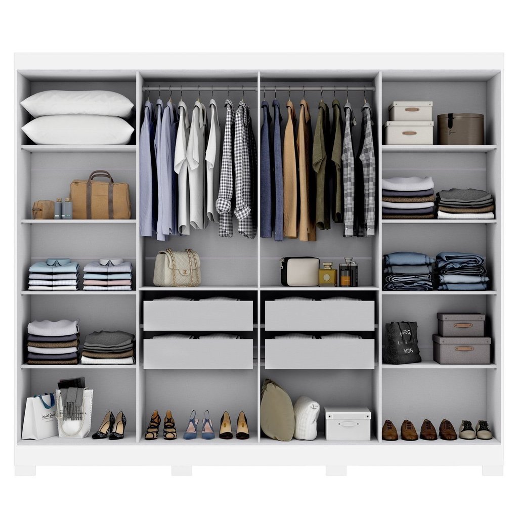 Guarda Roupa Casal 8 Portas 4 Gavetas com Pés Paris Espresso Móveis Branco