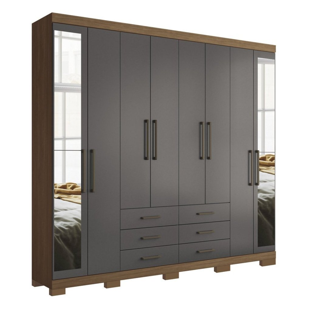 Guarda Roupa Casal 8 Portas 6 Gavetas Master com Espelho e Pés Jatoba/Grafite