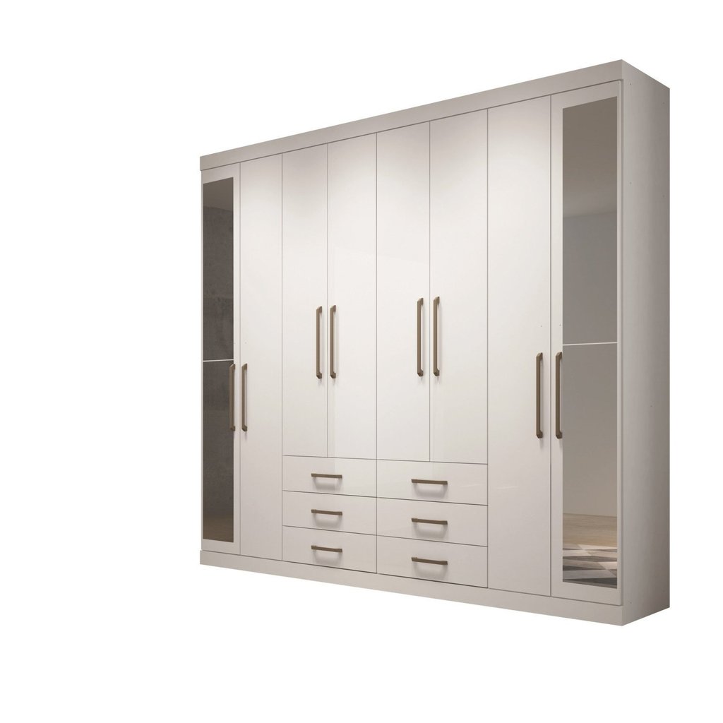 Guarda Roupa Casal 8 Portas 6 Gavetas Master com Espelhos Branco