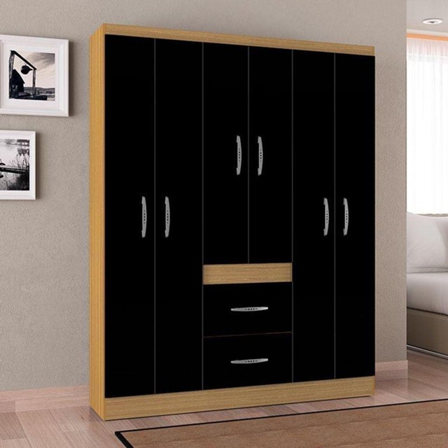 Guarda Roupa Casal Ambiente Milão 6 Portas Damasco Preto – Poquema