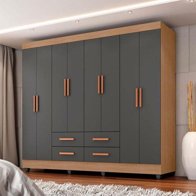 Guarda Roupa Casal Ambiente Porto 8 Portas Nature Cinza – Móveis Leão