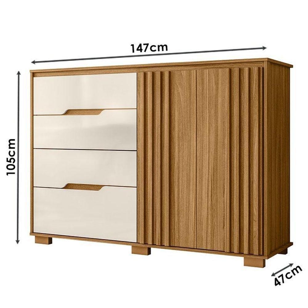 Guarda Roupa Casal Araguaia E Cômoda Texas Freijó Off White Com Espelho - Moval