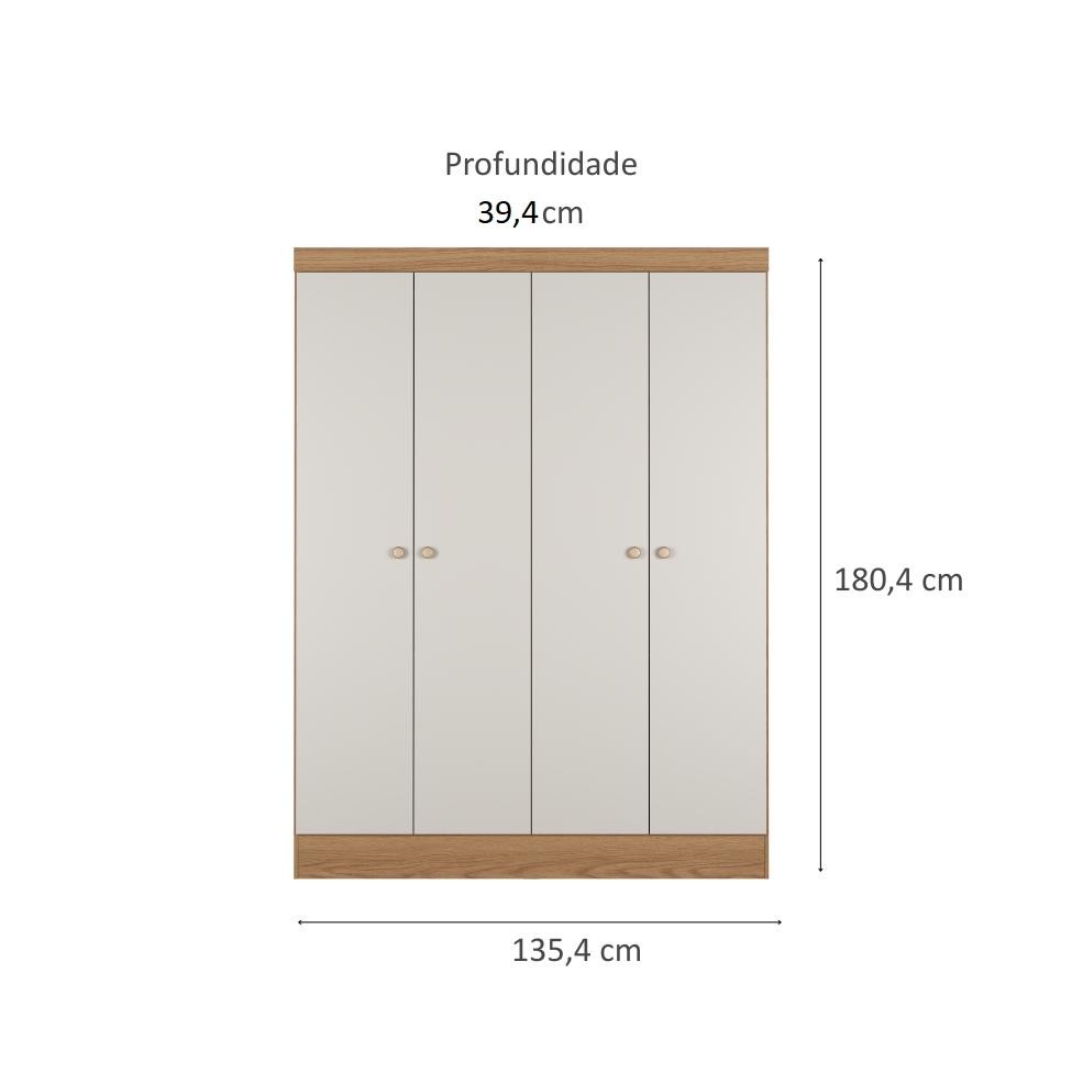 Que tal o Guarda-Roupa Boreal? O Guarda-Roupa Boreal é a combinação ideal de funcionalidade e sofisticação para o seu quarto. Com design moderno e estrutura resistente em MDP 12mm, ele oferece durabilidade e um visual elegante que combina com diferentes estilos de decoração. Suas 4 portas com dobradiças metálicas garantem um uso seguro e prático no dia a dia, enquanto os puxadores em ABS proporcionam conforto e um toque de modernidade. Para manter tudo sempre organizado, ele conta com 5 nichos e 2 prateleiras, ideais para roupas, acessórios e outros itens pessoais. E, para completar, as sapatas protetoras evitam danos ao piso e aumentam a estabilidade do móvel.