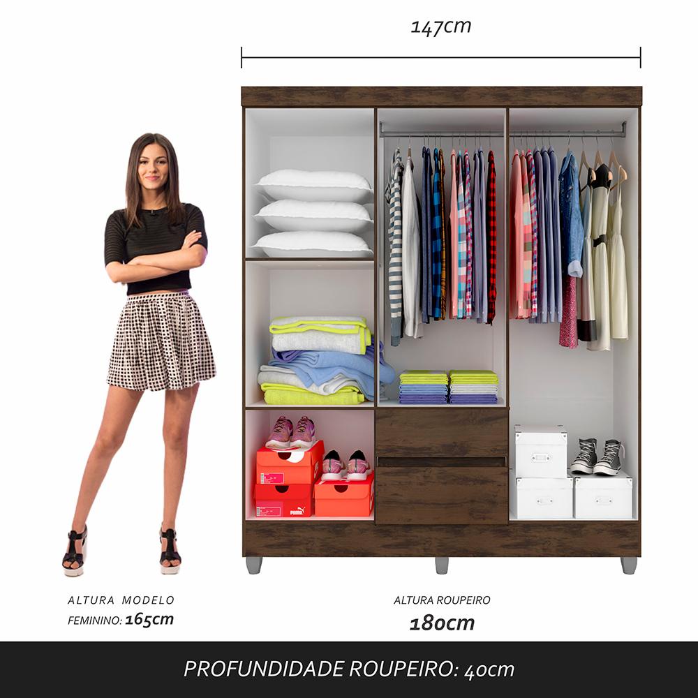 Procurando simplicidade e beleza em um guarda-roupa? O Roupeiro Cancún foi pensado para você! Fabricado com materiais de qualidade e com um design impecável é um móvel necessário que pode encantar ainda mais o seu ambiente! Medidas do Guarda-Roupa Montado: A: 180cm | L: 147cm | P: 40cm - Chapa MDP 12mm - Corrediça Metálica - Tonalidade: Capuccino - Dobradiça Metálica - Cabideiro de Madeira - Pés em PVC - Puxadores em PVC - Estruturado com material de altíssima qualidade, evitando fungos e mofo. Conteúdo da Embalagem: - 01 Guarda-Roupa - Plástico protetor - Caixa papelão - Acessório para Montagem Observações Importantes: - Imagens ambientadas meramente ilustrativas, objetos decorativos não compõe o produto; - Produto novo, garantia somente para defeitos de fabricação: 3 meses; - Não realizamos entregas em zonas rurais, via caminhos fluviais e distritos, NÃO ACEITAMOS CEP GERAL; - Não trabalhamos com entrega agendada. O recebedor deve ter mais de 18 anos. O valor do frete não inclui: subida de escada, elevador ou lançamento de produto, em condomínio residencial a entrega é feita somente até a portaria. As entregas são realizadas em dias e horários comerciais; - Ao receber o produto observe se a embalagem está em perfeita condição. Confira atentamente a quantidade de volumes; - Produto entregue desmontado. É responsabilidade do cliente a montagem/instalação do produto, inclusive despesa para sua realização. Recomendamos a contratação de um profissional especializado; - Evitar a exposição direta à luz solar e à umidade. Limpar com pano macio e seco, não utilizar produtos químicos; - A cor do produto pode variar de acordo com o monitor, a iluminação do ambiente ou sua percepção visual.