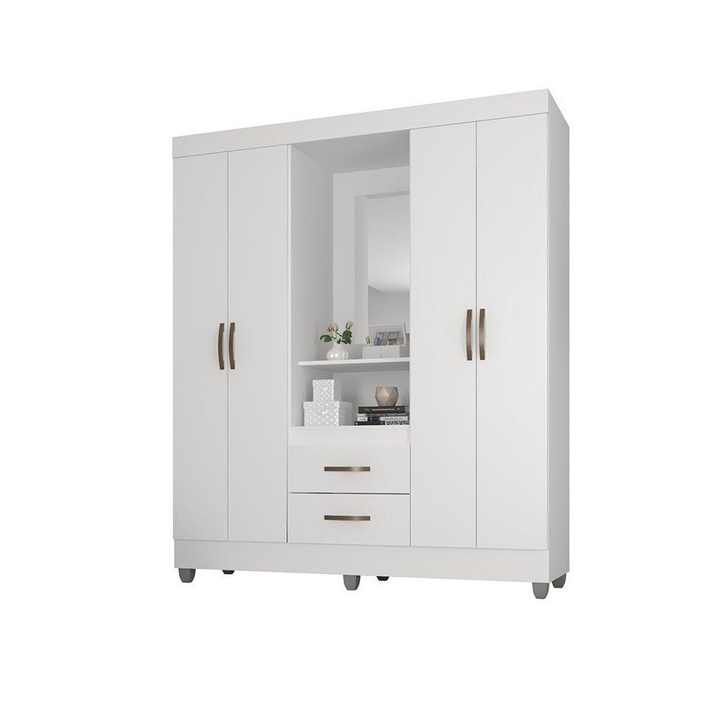 Guarda Roupa Casal Capela com Espelho 4 Portas e 2 Gavetas e Pés Lite Branco Brilho