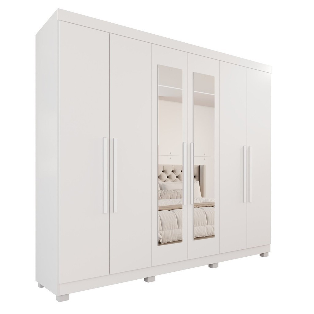 Guarda-Roupa Casal Casal 6 Portas 3 Gavetas com Espelho com Pés Roma Espresso Móveis Branco