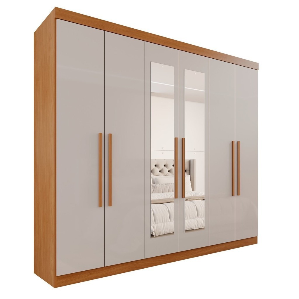 Guarda-Roupa Casal Casal 6 Portas 3 Gavetas com Espelho Roma Espresso Móveis Cinamomo/Off White