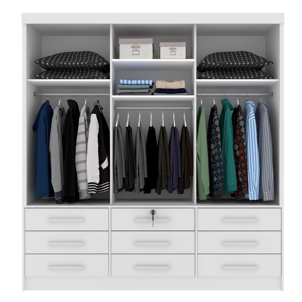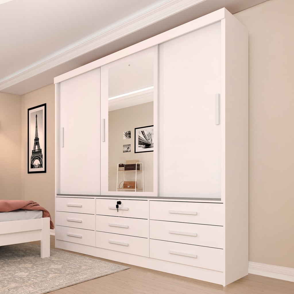 Guarda-Roupa Casal Chicago 3 Portas 9 Gavetas com Espelho