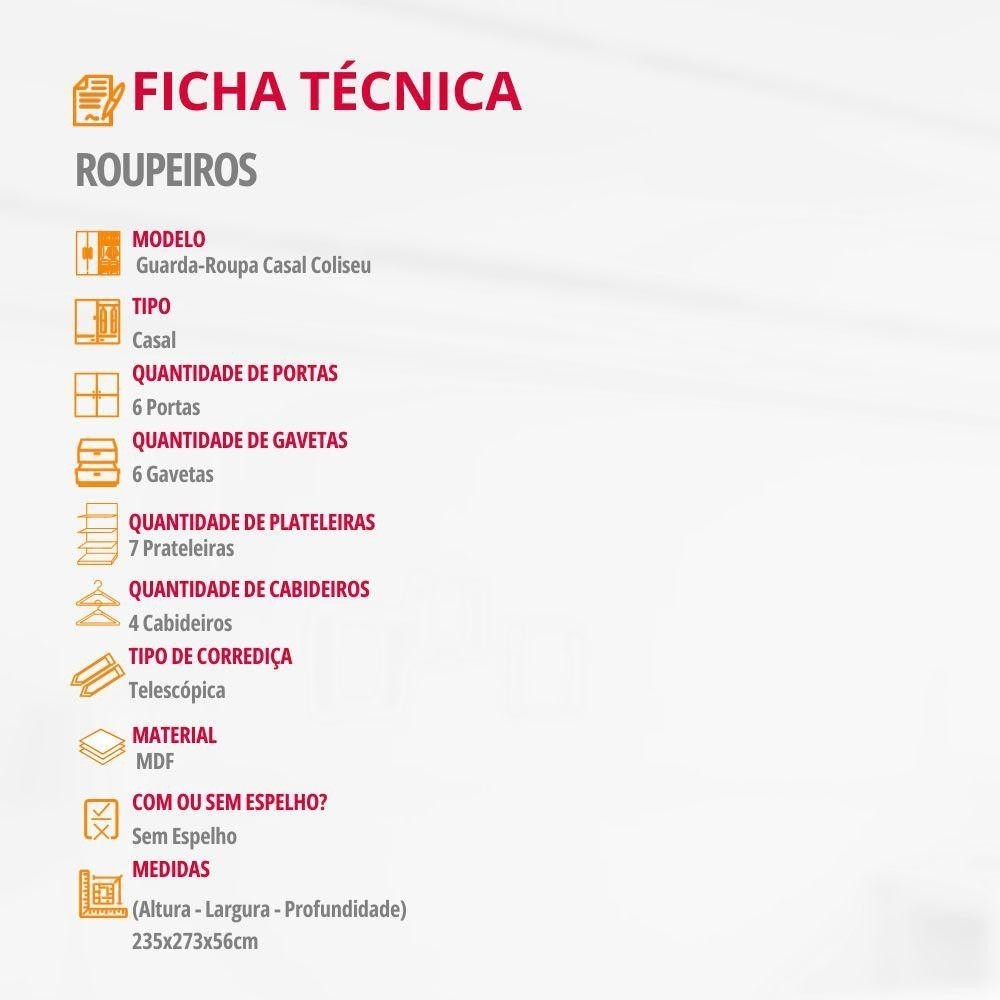 Guarda Roupa Casal Coliseu Mdf 6 Pts 6 Gvts Moderna Mobília Naturalle