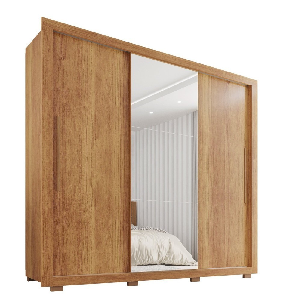 Guarda-roupa Casal com Espelho 3 Portas 4 Gavetas Costa Rica Cinamomo
