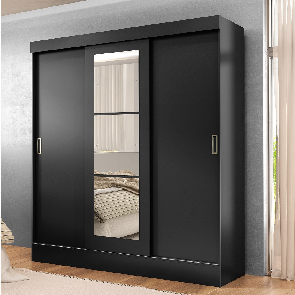 Guarda Roupa Casal com Espelho 3 Portas de Correr San Marino Maxel Móveis