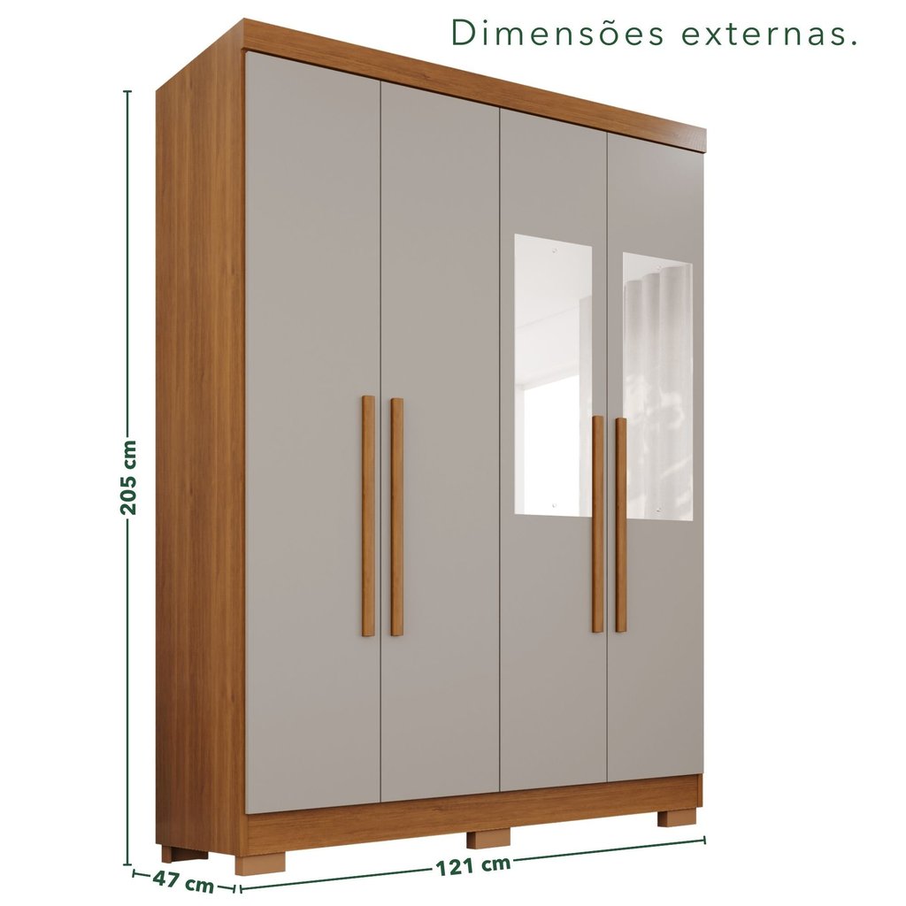 Guarda-roupa Casal com Espelho 4 Portas 2 Gavetas França Cinamomo/Off White