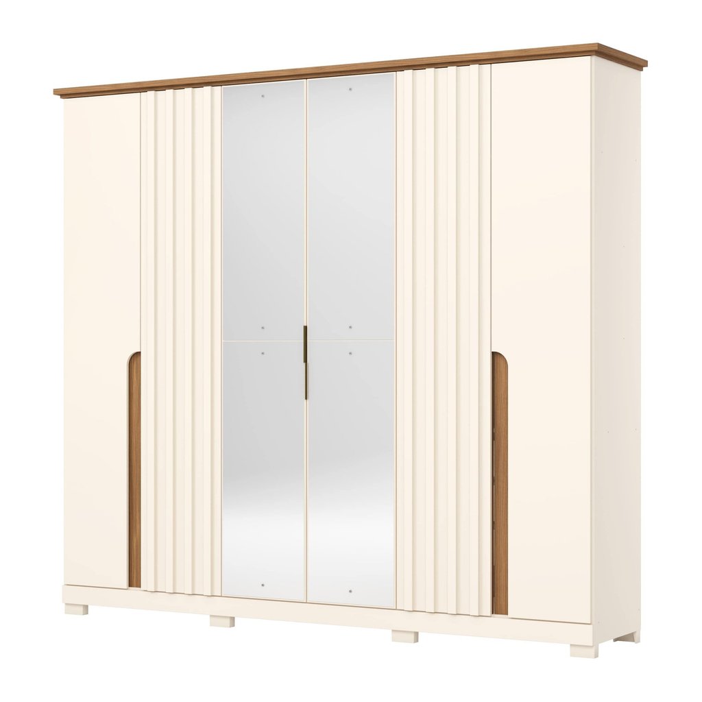 Guarda Roupa Casal com Espelho 6 Portas 6 Gavetas Napoli Off White/Nature