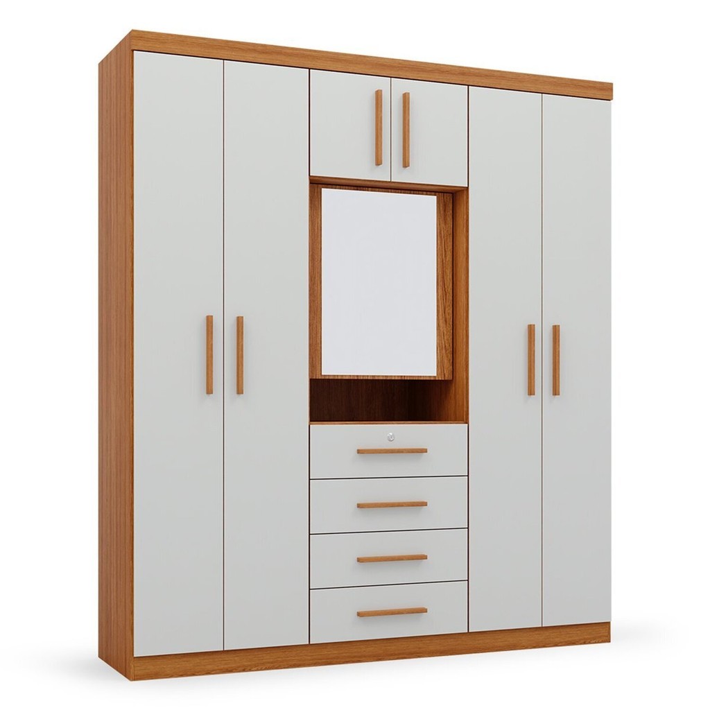 Guarda-roupa Casal com Espelho Capelinha 7 Portas 4 Gavetas Advantage Off White/Freijó