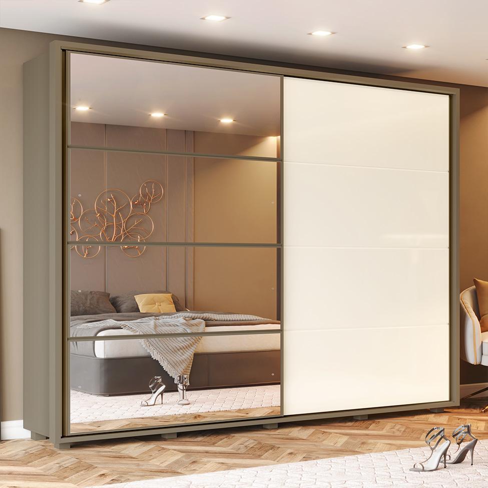 Guarda-Roupa Casal com Espelho Cavic 100% MDF 2 Portas 6 Gavetas Duna e Off White