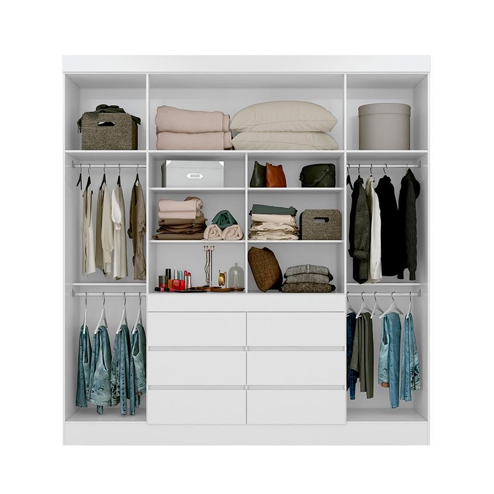 Que tal o Guarda-Roupa Trevi?Um quarto bem estruturado necessita de um bom guarda-roupa, por isso, conte com o modelo Trevi para organizar seu vestuário e adicionar funcionalidade ao cômodo. Com 4 portas e 6 gavetas, ele oferece ótimo espaço de armazenamento para você acomodar roupas, sapatos, acessórios, cosméticos e outros objetos pessoais, tudo para garantir que os itens essenciais à sua rotina estejam sempre à mão. Já por fora, o visual clássico facilita a tarefa de harmonizá-lo com o restante do mobiliário e criar uma decoração sóbria e elegante, do jeito que seu lar-style merece. Coroando os benefícios do móvel, está o espelho, que é ótimo na hora conferir o cabelo, a maquiagem e o look no dia a dia. Completo, né? Cor: Branco Garantia em Meses: 3 Cores do Produto: Branco Instruções/Cuidados: Limpar com pano seco Conteúdo da Embalagem: 1 Guarda-Roupa - Entregue em: 4 Volumes Modelo: Trevi Número de Volumes: 4 Material: O Guarda-Roupa Trevi possui estrutura em MDP 12mm, portas articuladas com dobradiças metálicas, gavetas com corrediças metálicas, espelho laminado 3mm e acabamento fosco Material para Filtro: MDP Descrição do Tamanho: Altura: 217 cm | Largura: 200 cm | Profundidade: 47 cm Altura do Produto (cm): 217 Largura do Produto (cm): 200 Comprimento do Produto (cm): 47 Peso do Produto (Kg): 121 Produto precisa de Montagem?: Sim, sugerimos a contratação do nosso serviço de montagem (para os CEPs em que o serviço está disponível) ou de algum profissional experiente de sua preferência Divisória de Espaço: 0 Tipo de Guarda-Roupas: Casal Gaveta com Divisórias: 0 Gaveta com trava: 0 Sapatas: 0 Cabideiro: 0 Número de portas: 4 Número de gavetas: 6 Tipo de pé: Fixo Número de Prateleiras: 11 Material da dobradiça/trilho da porta: Metal Material da estrutura: MDP Material do cabideiro: Metal Material do fundo: HDF Material do puxador: Metal Necessita fixação na parede: Não Possui chaves: Não Possui espelho/vidro: Sim Tipo da Corrediça da gaveta: Metálica Tipo de Porta: Articulada Material dos pés: PVC PROFUNDIDADE x LARGURA x ALTURA: 47 x 200 x 217 Fornecedor: Demobile Industria de Moveis Ltda Baterias são necessárias?: Não Certificação de teste externa: Não Componentes incluídos: Não Is Fragile: Não Número da peça: Não Inclui manual de montagem: Sim Inclui Manual de Montagem: Sim