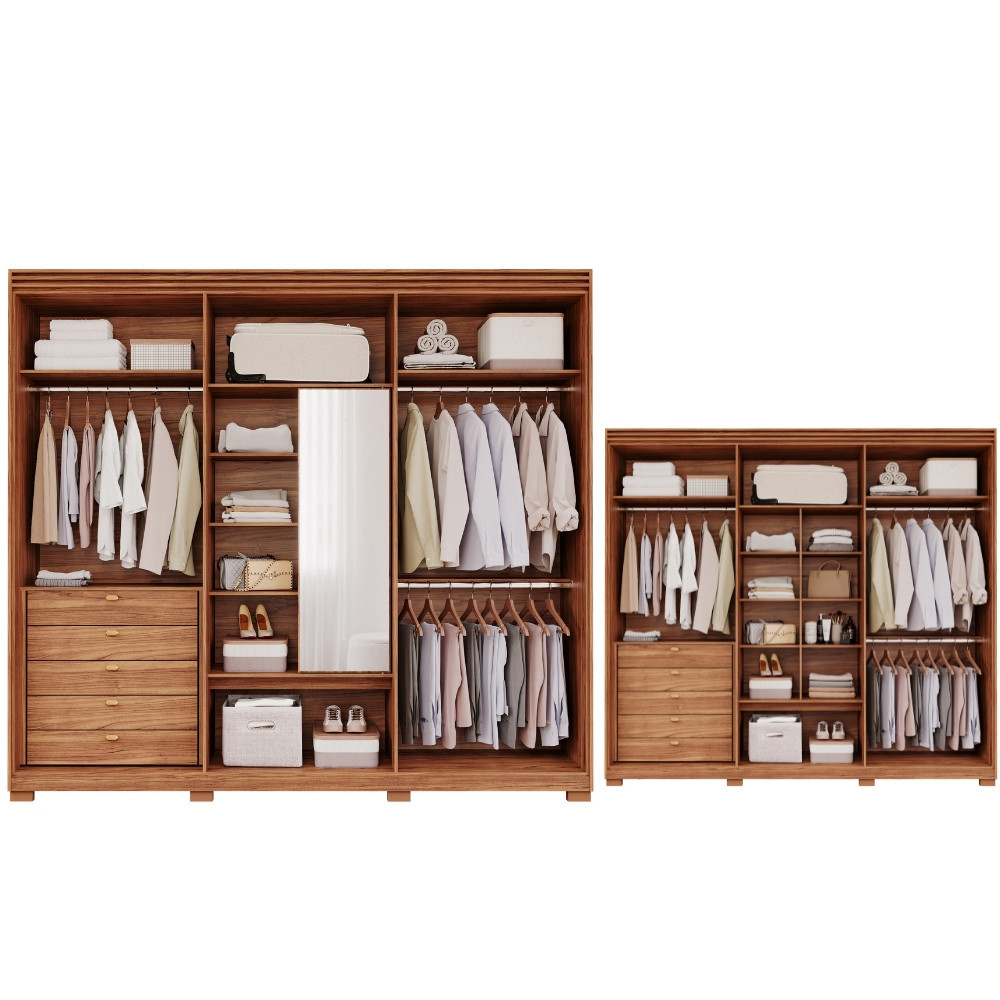 Transforme seu quarto com o Guarda-Roupa Aurora, fabricado 100 em MDF para unir resistência e elegância! Equipado com 6 Portas, 5 gavetas com corrediças telescópicas e nichos centrais, ele oferece organização impecável para todas as suas necessidades. O espelho interno de corpo inteiro adiciona funcionalidade e estilo, enquanto as dobradiças de 35 mm com amortecimento garantem um fechamento suave e silencioso. Um móvel completo, pensado para quem busca praticidade, beleza e alta qualidade em cada detalhe! Características: Estrutura 100 em MDF 6 Portas 5 Gavetas internas Corrediças telescópicas Moldura superior ripada Puxadores em alumínio Dobradiças com amortecimento Espelho interno Cabideiro em alumínio Pés em ABS Dimensões: Altura: 240 cm Largura: 262,8 cm Profundidade: 53,6 cm Peso: 233,95 kg Garantia do fornecedor de 3 meses