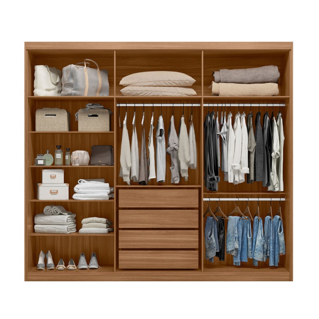 Guarda-Roupa Casal Dalila 3 Portas 4 Gavetas 5 Prateleiras com 1 Porta Espelho 100% MDF Amêndola/Off-White - Demóbile