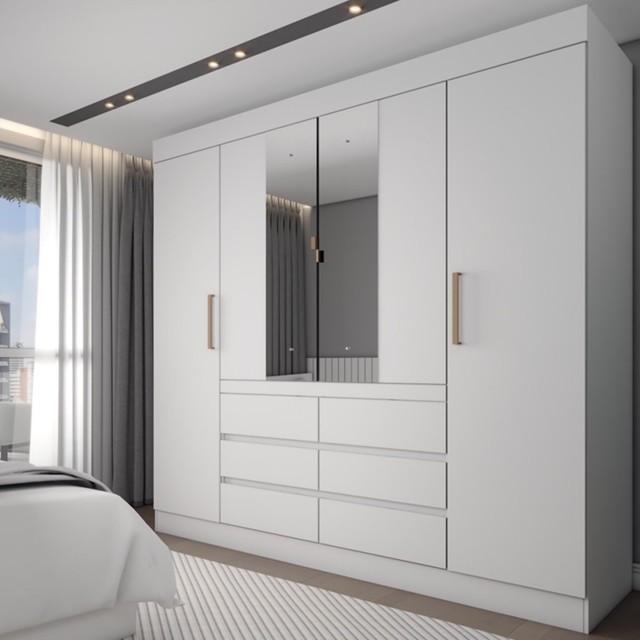 Guarda-Roupa Casal Honey 4 Portas 6 Gavetas com Espelho Branco - Panorama Móveis