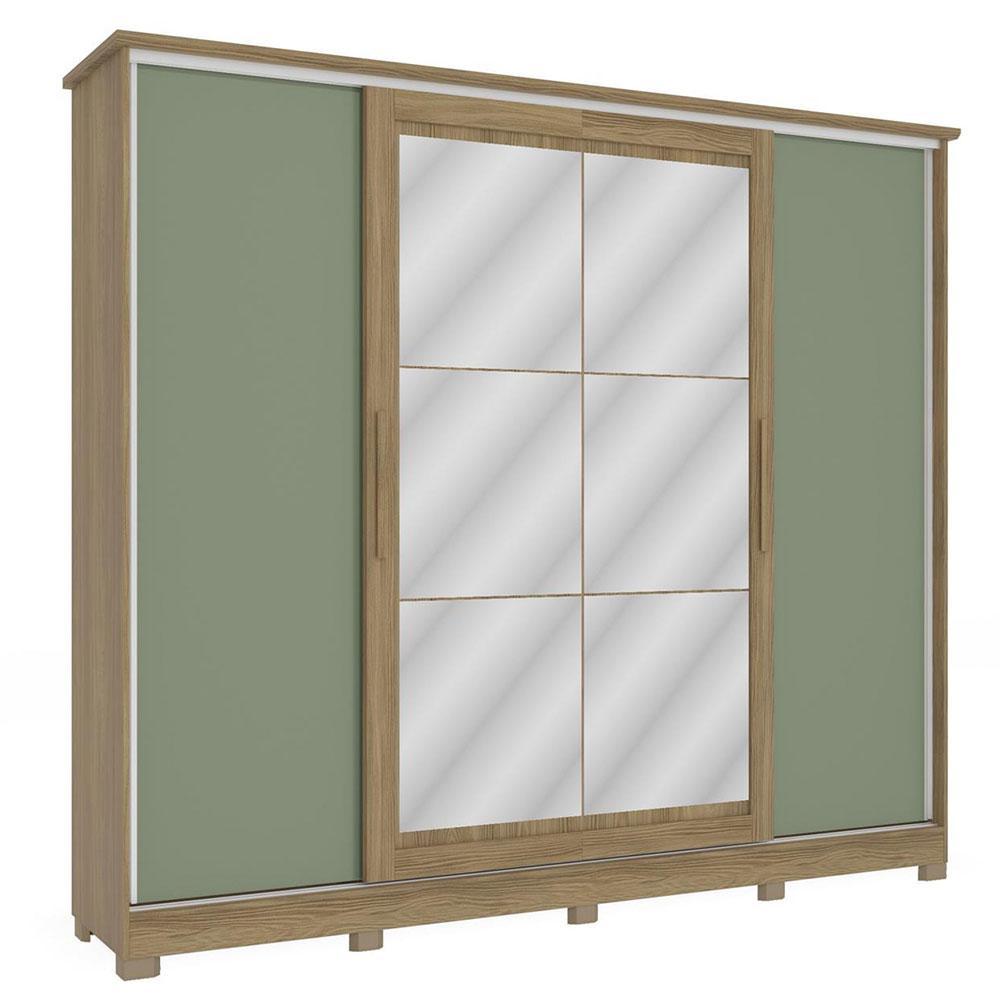 Guarda-Roupa Casal Kappesberg CB01N565, 4 Portas de Correr Reversíveis com Espelho, Verde ou Macadâmia, 265 cm