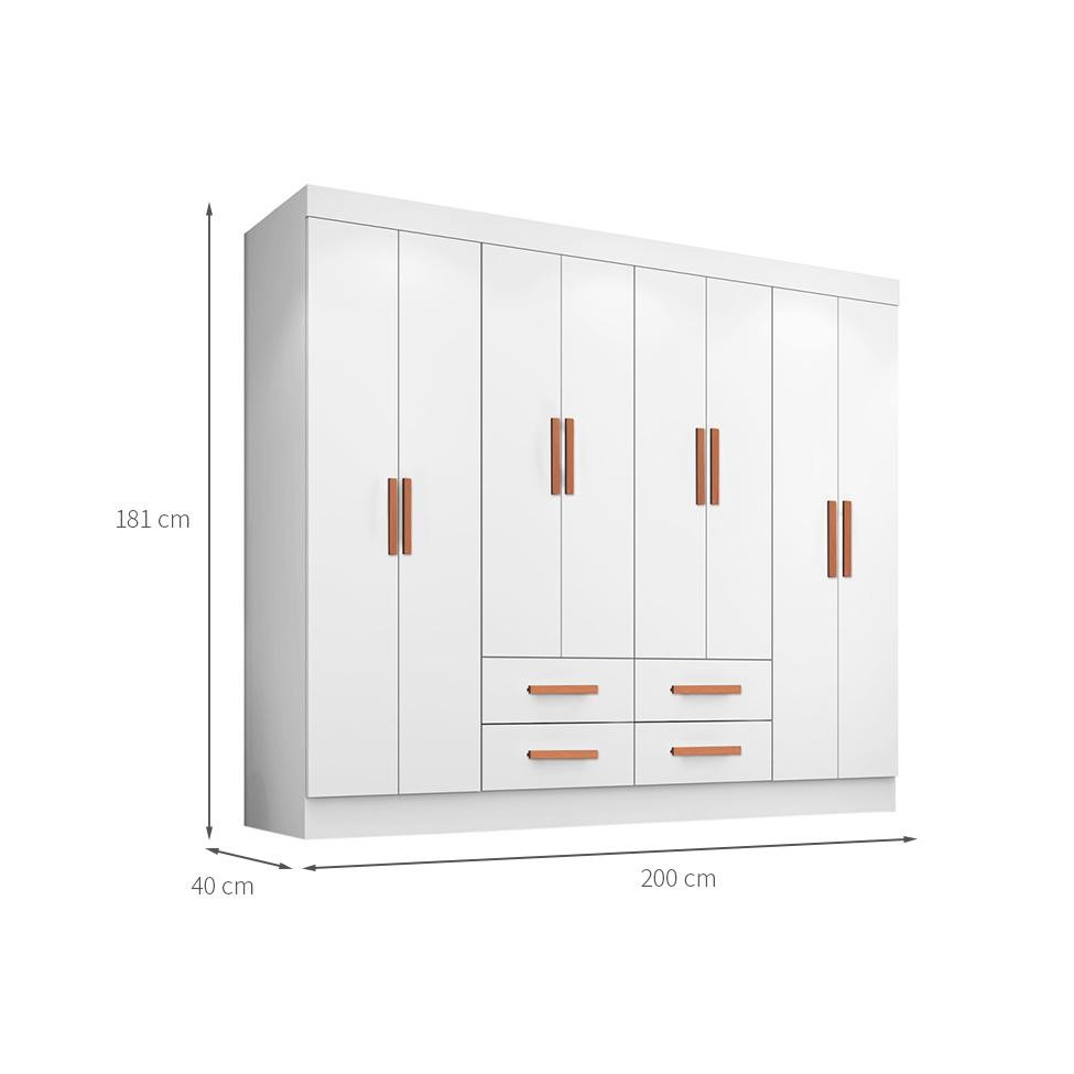 Que tal o Guarda-Roupa Lite? Amplo e perfeito para ser dividido por um casal, o Guarda-Roupa Lite é a escolha certa para seu closet ou dormitório dos sonhos. Dispondo de 8 portas e 4 gavetas, a divisão interna conta com nichos e cabideiros distribuídos de maneira simétrica, assim cada um terá o espaço ideal para organizar vestuário, acessórios e até calçados. Por fora, o móvel tem visual atemporal que destaca os puxadores alongados, toque moderno que dá um ar elegante à decoração.