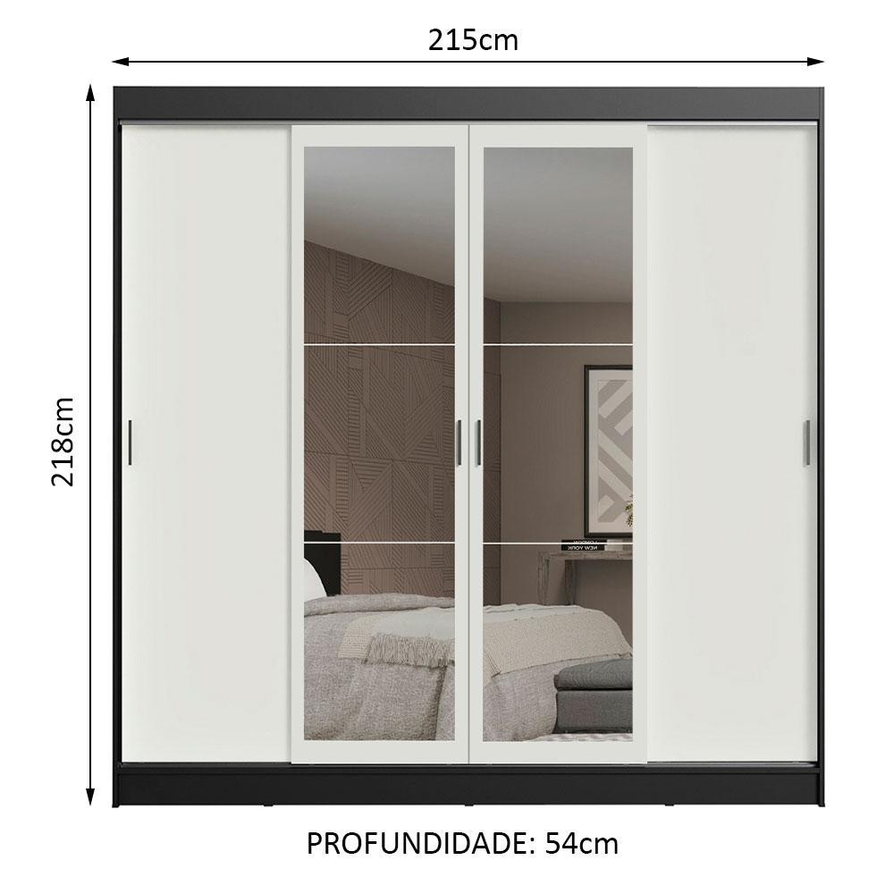 Guarda-Roupa Casal Madesa Austin 4 Portas de Correr com Espelhos 3 Gavetas - Preto/Branco