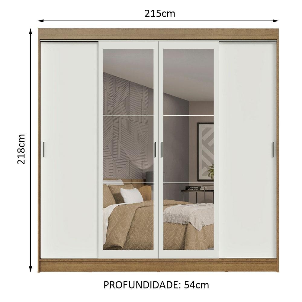 Guarda-Roupa Casal Madesa Austin 4 Portas de Correr com Espelhos 3 Gavetas - Rustic/Branco