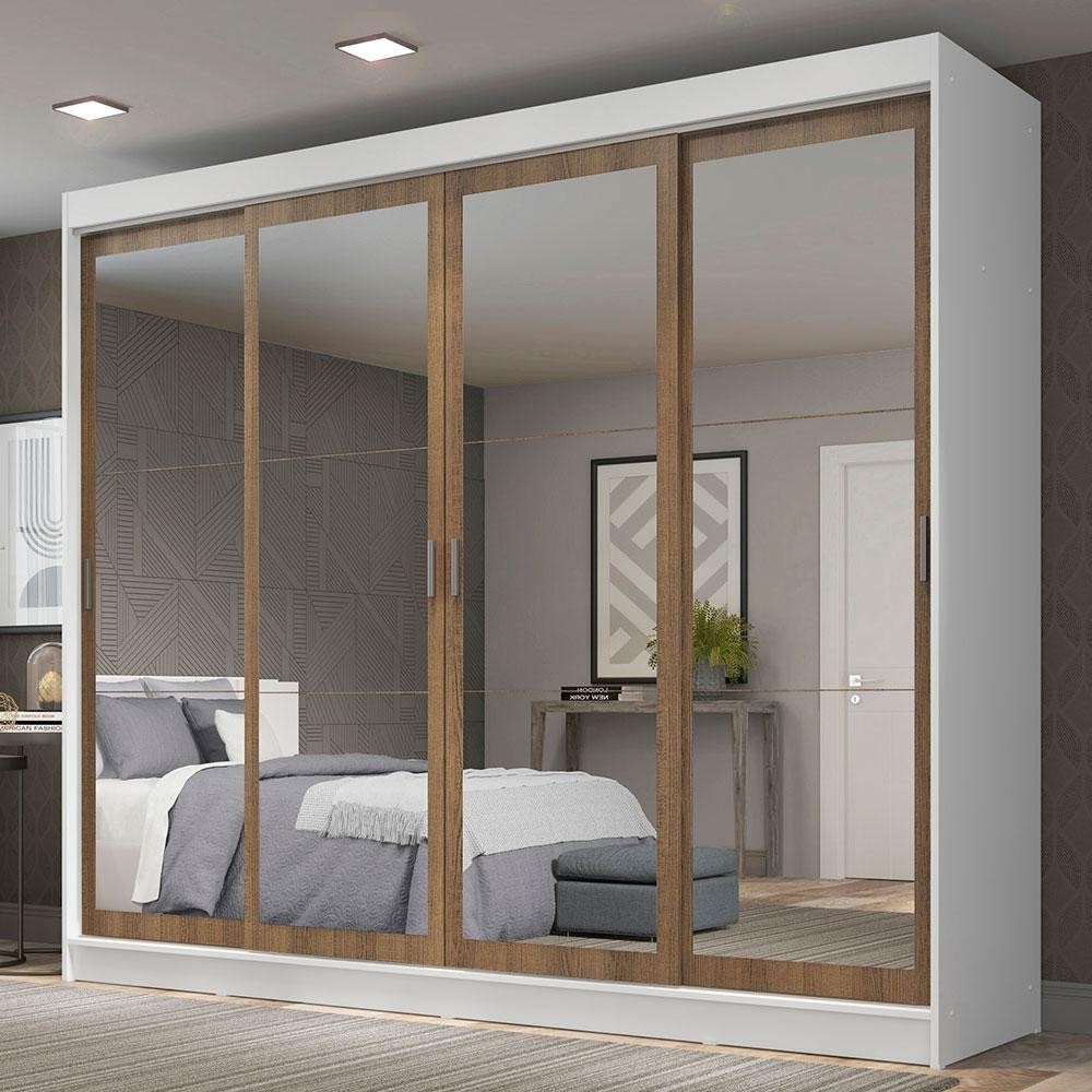 Guarda-Roupa Casal Madesa Austin 4 Portas de Correr de Espelho 3 Gavetas