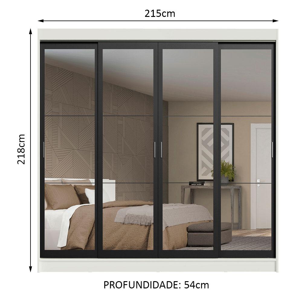 Guarda-Roupa Casal Madesa Austin 4 Portas de Correr de Espelho 3 Gavetas