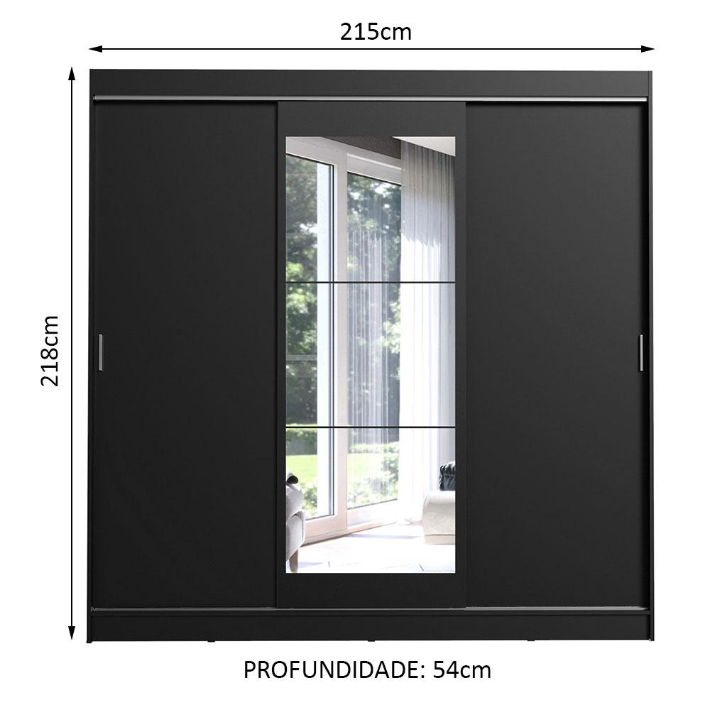 Guarda-Roupa Casal Madesa Istambul 3 Portas de Correr com Espelho 3 Gavetas - Preto