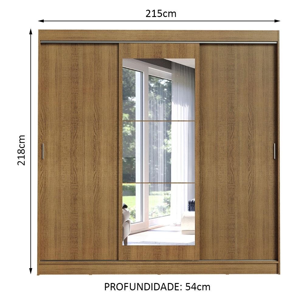 Guarda-Roupa Casal Madesa Istambul 3 Portas de Correr com Espelho 3 Gavetas - Rustic