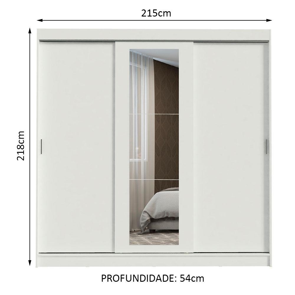 O Guarda-Roupa Kansas da Madesa possui três portas de correr com deslizamento suave, trilhos em alumínio para maior resistência e dois puxadores externos. Uma das portas possui o diferencial dos espelhos, que são muito úteis no uso diário. O tamanho é pensado especialmente para a necessidade de um casal. A divisão interna é ótima, com muitas prateleiras e nichos, além de três gavetas espaçosas com corrediças metálicas, muito mais seguras e resistentes. Os dois cabideiros são em alumínio e possuem espaços tanto para roupas curtas quanto mais longas. Ou seja, tem lugar pra organizar tudo: roupas, calçados, malas, travesseiros, edredons e muito mais. O acabamento é branco, feito com a Pintura Poliéster exclusiva da Madesa. Esse processo é ecologicamente correto e conserva o móvel por muito mais tempo. Medidas totais do móvel: 218 cm de altura x 215 cm de largura x 54 cm de profundidade. As imagens são meramente ilustrativas. Itens inclusos: - Três (3) portas de correr com sistema anti-descarrilhamento, sendo uma delas com espelhos - Dois (2) puxadores em PVC - Três (3) gavetas internas com corrediças metálicas - Dois (2) cabideiros em alumínio Código do produto: 1018091E Obs.: A Madesa não disponibiliza serviço de montagem. A embalagem acompanha as ferragens necessárias e o manual com todos os passos para a instalação do produto. 1 – O produto é novo ou usado? R.: Todos os produtos da Madesa são novos, enviados da nossa fábrica diretamente para as casas de nossos clientes. 2 – O produto vem montado? Se não, vocês realizam a montagem? R.: A Madesa não disponibiliza serviço de montagem. Todos os produtos seguem com manual de instalação e as ferragens necessárias. Alguns produtos possuem vídeo explicando o passo a passo da montagem. 3 – Vocês possuem loja física? Posso retirar meu produto em mãos? R.: Não possuímos loja física, apenas loja virtual. Confira as opções de envio ao colocar o seu CEP. 4 – Qual é o valor do envio? Posso pagar separadamente? R.: O valor do envio é calculado com base no peso e volume do produto, e no CEP de destino. Você pode calcular o valor e prazo de entrega no simulador. 5 – A Madesa entrega em todo Brasil? Como é feita a entrega? R.: Sim, entregamos no Brasil inteiro através de transportadoras parceiras. 6 – O produto acompanha Nota Fiscal? R.: Sim, todos os produtos são entregues com suas respectivas notas fiscais. 7 – Os produtos possuem garantia? R.: Sim. A Madesa oferece 3 meses de garantia para defeitos de fabricação. A Madesa possui compromisso com a sustentabilidade. Geramos energia limpa em nossa própria usina, priorizamos fornecedores responsáveis e utilizamos plástico reciclado em nossa produção. Além disso, reinserimos sobras no ciclo de reciclagem e investimos no desenvolvimento de nossos colaboradores e da comunidade. Garantia: Este produto conta com 1 ano de garantia total, sendo 3 meses de garantia legal e 9 meses de garantia contratual. A garantia cobre exclusivamente defeitos de fabricação e vícios ocultos. Não estão cobertos: problemas decorrentes de montagem incorreta, uso inadequado, exposição à umidade, calor ou luz solar direta, modificações no produto ou desgaste natural.