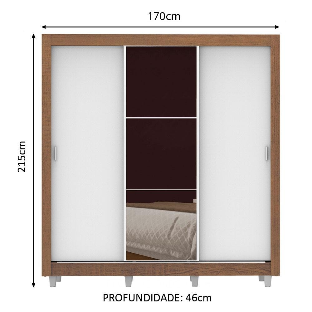 Guarda Roupa Casal Madesa Lyon 3 Portas de Correr com Espelho 2 Gavetas com Pés - Rustic/Branco
