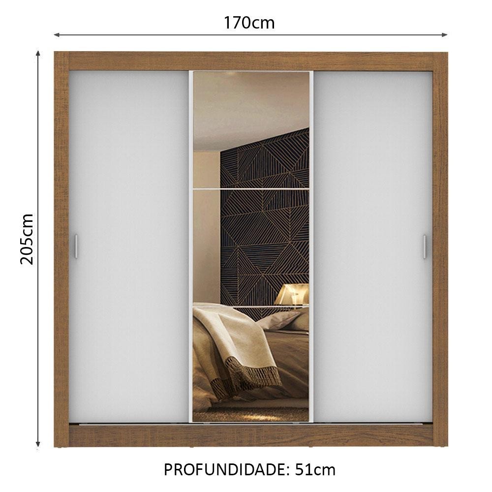 Guarda Roupa Casal Madesa Mônaco 3 Portas de Correr com Espelho - Rustic/Branco