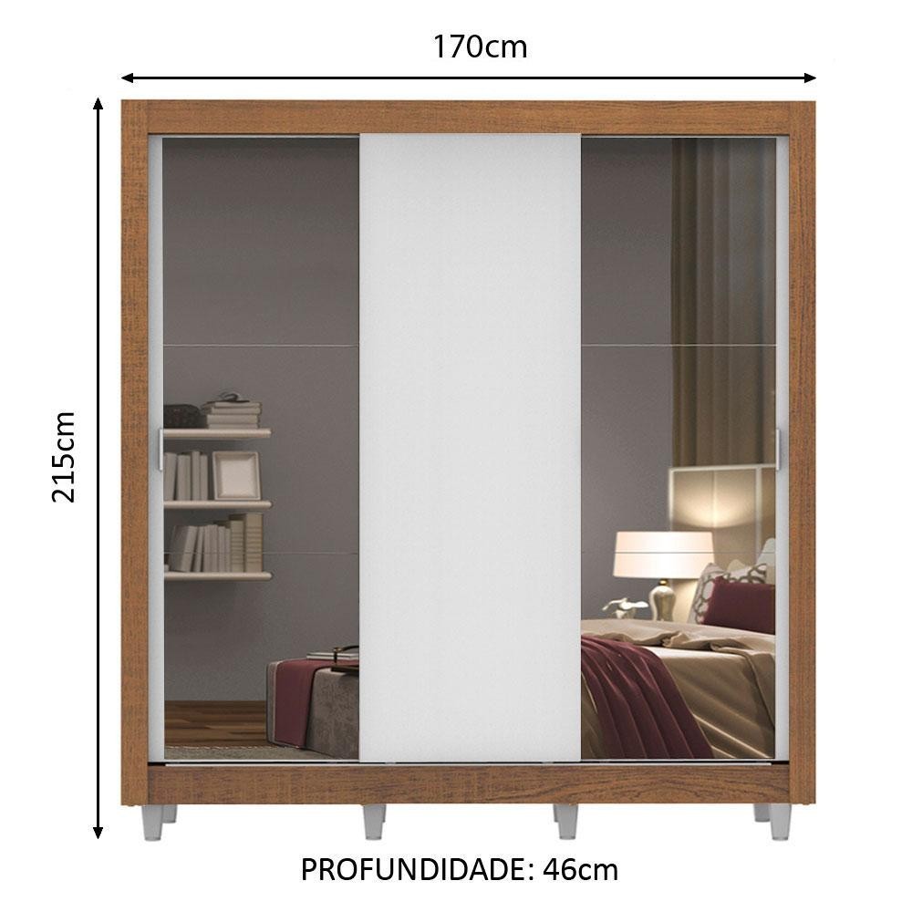 O Guarda-Roupa de Casal com melhor custo benefício do mercado. Ferragens de qualidade, duas portas com espelhos, cabideiro metálico e pintura em Poliéster Protetor que confere durabilidade e resistência. As portas de correr possuem trilho superior e inferior em alumínio e sistema de deslizamento suave garantindo melhor funcionamento. Total aproveitamento interno levando em conta o uso de duas pessoas. São muitos nichos que facilitam a organização de roupas, calçados e acessórios. O tubo cabideiro é muito resistente e possui espaço para roupas longas. Neste modelo, possui pés reguláveis em PVC que conferem beleza e uma melhor sustentação. O acabamento da estrutura é no padrão amadeirado Rustic. As portas e a parte interna das costas são brancas. O processo é feito em Pintura Poliéster de alta resistência que confere maior durabilidade ao produto. A pintura é ecológica, isenta de gases que vão para a atmosfera. Medidas totais do armário: 215 cm de altura x 170 cm de largura x 51 cm de profundidade. Imagens meramente ilustrativas. Itens inclusos: - Três (3) prateleiras totalizando seis (6) nichos - Um (1) cabideiro grande - Três (3) portas de correr sendo uma (1) de madeira e duas (2) com espelhos e puxadores em alumínio - Um (1) Kit com oito (8) pés em PVC Código do produto: 10936E2ECP Obs.: O móvel não possui gavetas A Madesa não disponibiliza serviço de montagem. O produto segue com manual e todas as ferragens necessárias para a instalação. A Madesa possui compromisso com a sustentabilidade. Geramos energia limpa em nossa própria usina, priorizamos fornecedores responsáveis e utilizamos plástico reciclado em nossa produção. Além disso, reinserimos sobras no ciclo de reciclagem e investimos no desenvolvimento de nossos colaboradores e da comunidade. Garantia: Este produto conta com 1 ano de garantia total, sendo 3 meses de garantia legal e 9 meses de garantia contratual. A garantia cobre exclusivamente defeitos de fabricação e vícios ocultos. Não estão cobertos: problemas decorrentes de montagem incorreta, uso inadequado, exposição à umidade, calor ou luz solar direta, modificações no produto ou desgaste natural.