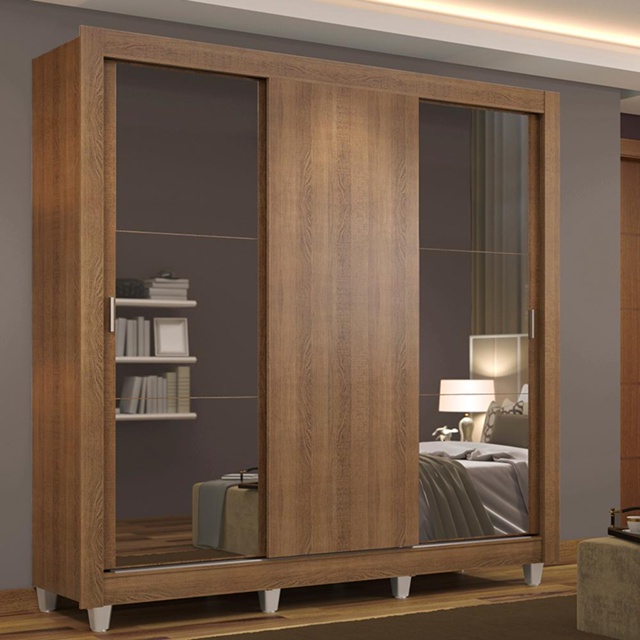 Guarda Roupa Casal Madesa Mônaco 3 Portas de Correr com Espelhos com Pés