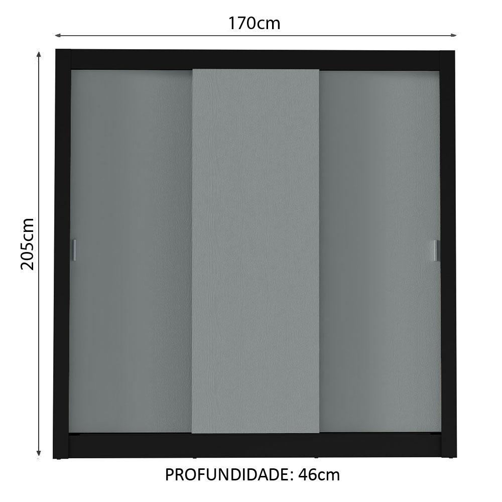 Guarda-Roupa Casal Madesa Mônaco 3 Portas de Correr - Preto/Cinza