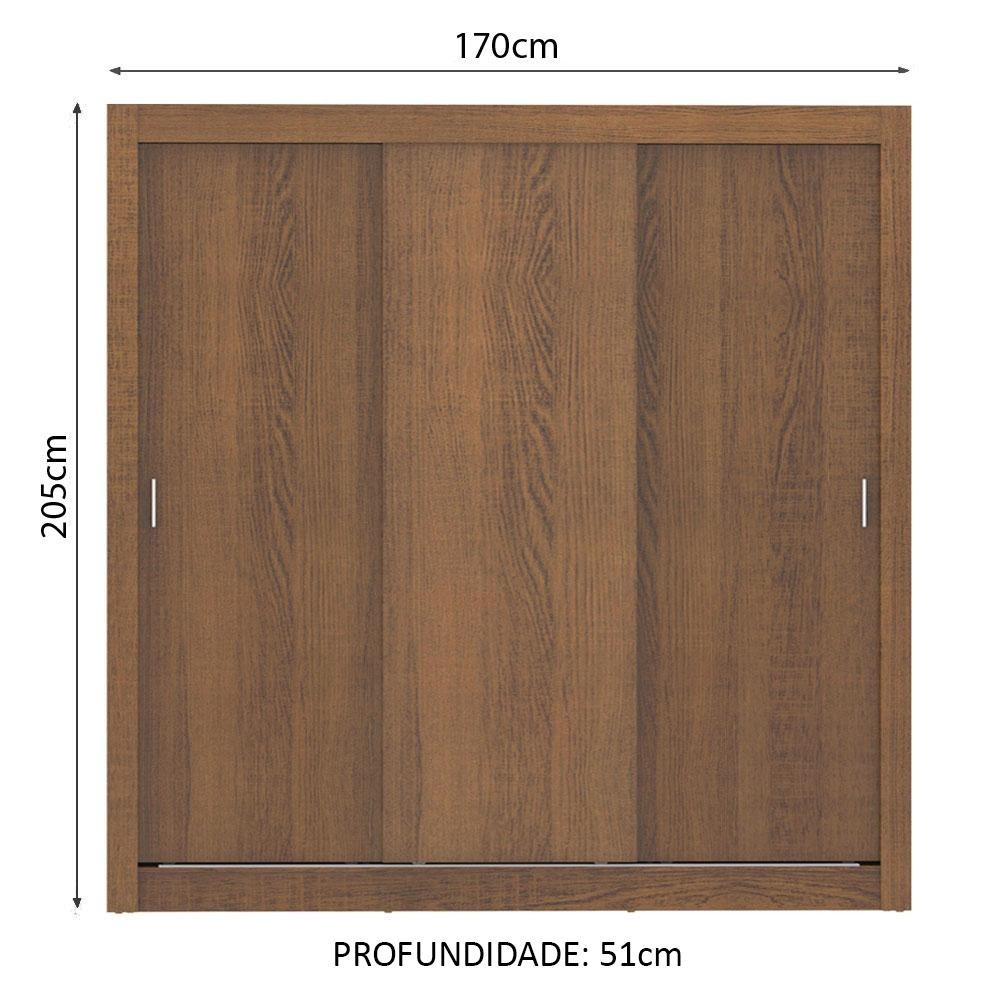 Guarda Roupa Casal Madesa Mônaco 3 Portas de Correr - Rustic