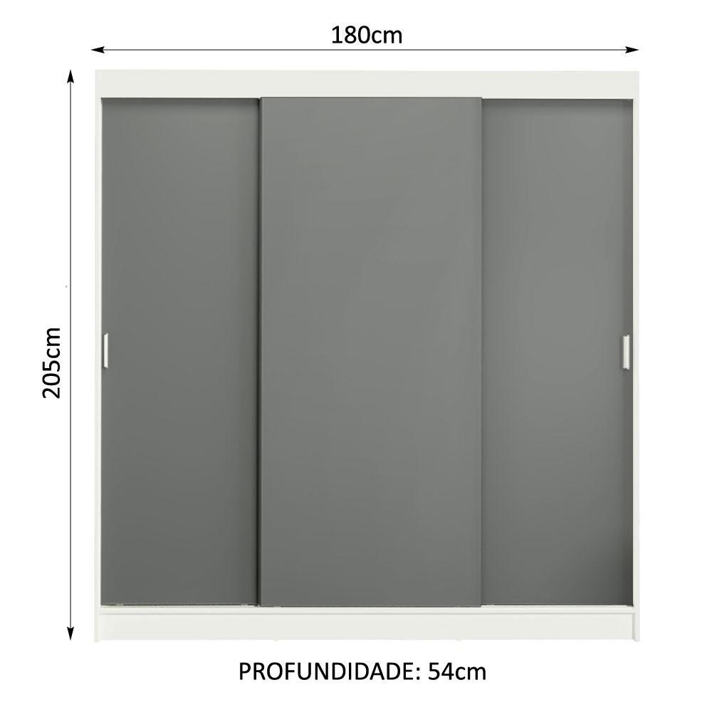 Guarda-Roupa Casal Madesa Reno 3 Portas de Correr - Branco/Cinza