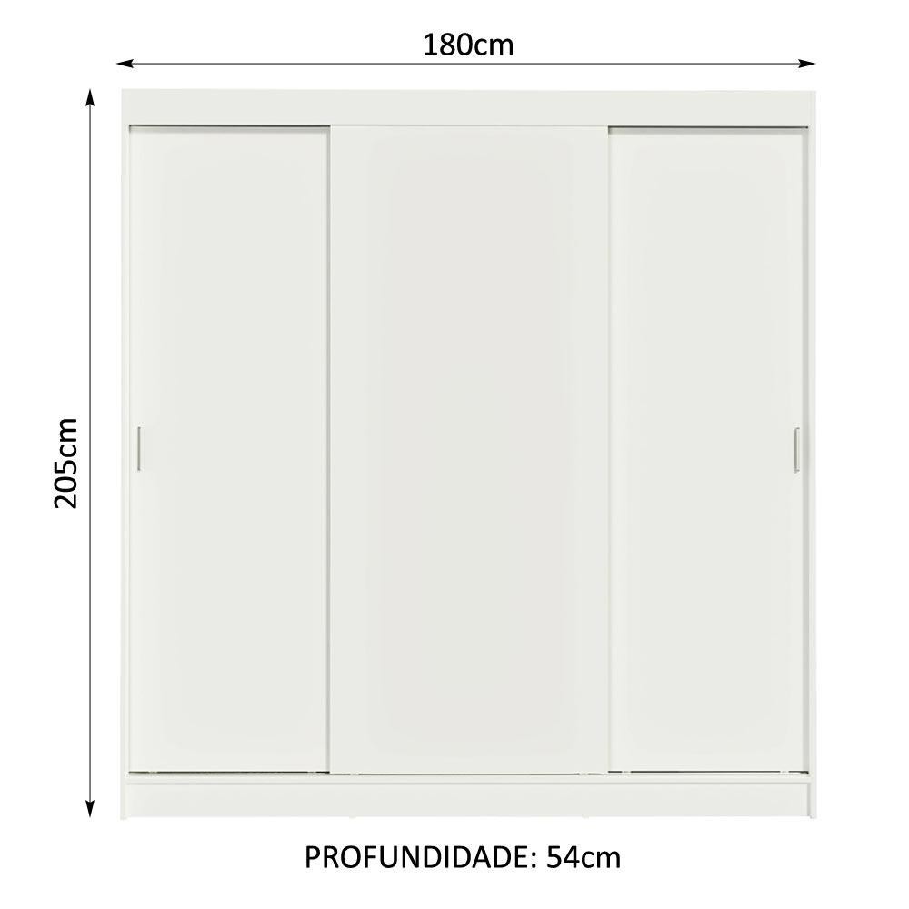 Guarda-Roupa Casal Madesa Reno 3 Portas de Correr - Branco