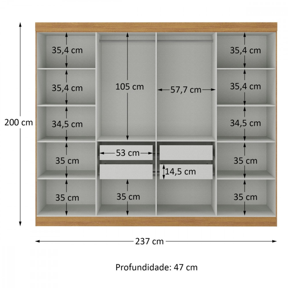 O Guarda-Roupa Maxel Paris 8 Portas é a escolha ideal para quem busca espaço interno, organização e design moderno. Com estrutura fabricada em MDP de alta qualidade, ele oferece resistência e durabilidade para o uso diário. Conta com 8 portas bem distribuídas, proporcionando excelente aproveitamento interno para roupas longas, dobradas e acessórios. As gavetas com corrediças telescópicas garantem abertura suave e maior vida útil, enquanto os varões e calceiro em madeira agregam robustez e sofisticação. Seu acabamento combina o Cinamomo Fosco, que traz aconchego e elegância, com o Off White Brilho, que ilumina o ambiente e valoriza o quarto. Os puxadores em ABS na cor bronze completam o visual moderno do móvel. Este modelo não é Flex Color (as portas não podem ser invertidas) Não acompanha espelho nem kit de pés (itens opcionais) MEDIDAS DO PRODUTO (MONTADO) Altura: 2,00 m Largura: 2,37 m Profundidade: 0,47 m FICHA TÉCNICA Marca: Maxel Modelo: Paris Quantidade de portas: 8 Material da estrutura: MDP 15mm e 12mm Corrediças: Telescópicas Varões: Madeira Calceiro: Madeira Puxadores: ABS cor bronze Suporte de peso prateleiras: até 6 kg Suporte de peso gavetas: até 3 kg Acabamento: Cinamomo: Fosco Off White: Brilho Flex Color: Não Espelho: Não acompanha Kit pés: Não acompanha Garantia: 3 meses INDICADO PARA - Quartos de casal - Quem precisa de grande espaço interno - Ambientes modernos e sofisticados - Uso residencial CONTEÚDO DA EMBALAGEM - 01 Guarda-Roupa Maxel Paris 8 Portas - Produto enviado desmontado - Manual e ferragens inclusos - Montagem não inclusa Imagens meramente ilustrativas. Objetos de decoração que aparecem nas imagens não acompanham o produto. As cores podem variar conforme iluminação do ambiente e configuração do monitor. Antes da compra, confira atentamente as medidas do produto e do espaço disponível. AVISO! Esclarecemos que a Opção Móveis se responsabilizará pela entrega dos produtos adquiridos até a porta de entrada ou portaria do endereço indicado, ou seja: é de total responsabilidade do cliente a montagem, desmontagem e instalação do produto adquirido. Para evitar futuros desagrados ou imprevistos com a entrega, também é necessário que o cliente confira as dimensões do produto escolhido, antes de finalizar a compra, devendo certificar-se de que a mercadoria passará normalmente por elevador, porta, escada e corredor