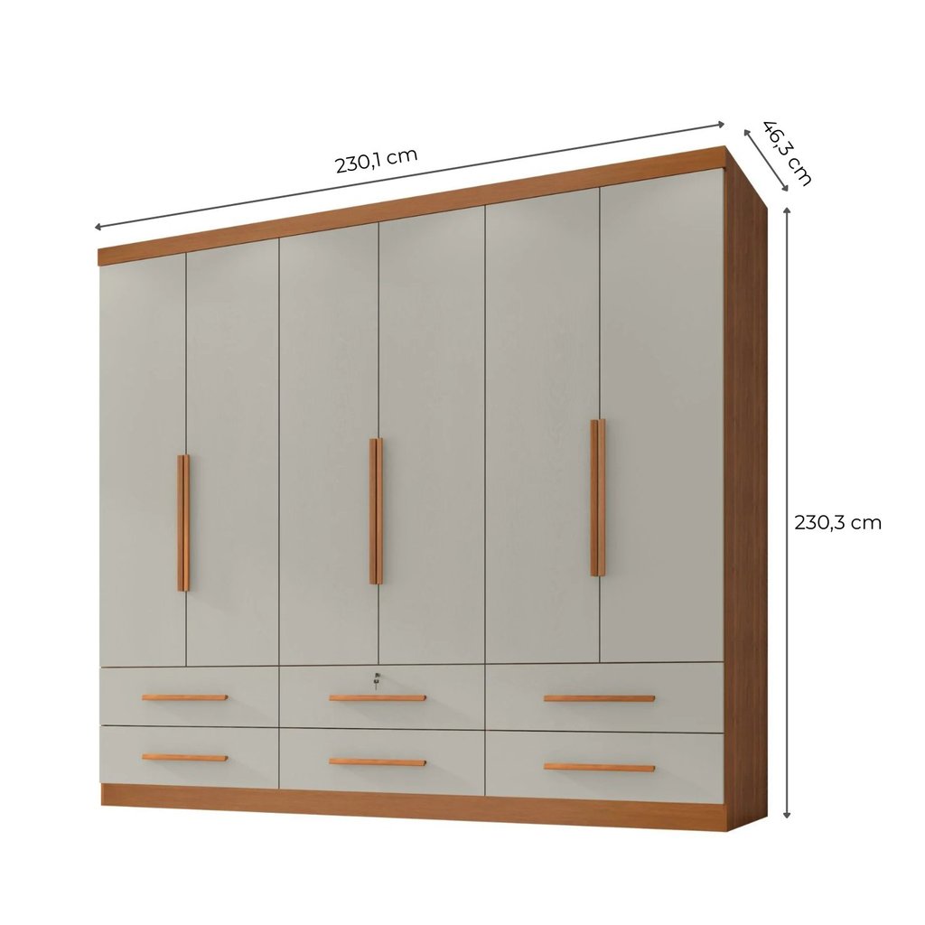 Guarda Roupa Casal Maximus Plus 6 Portas de Bater 6 Gavetas Cinamomo/Areia