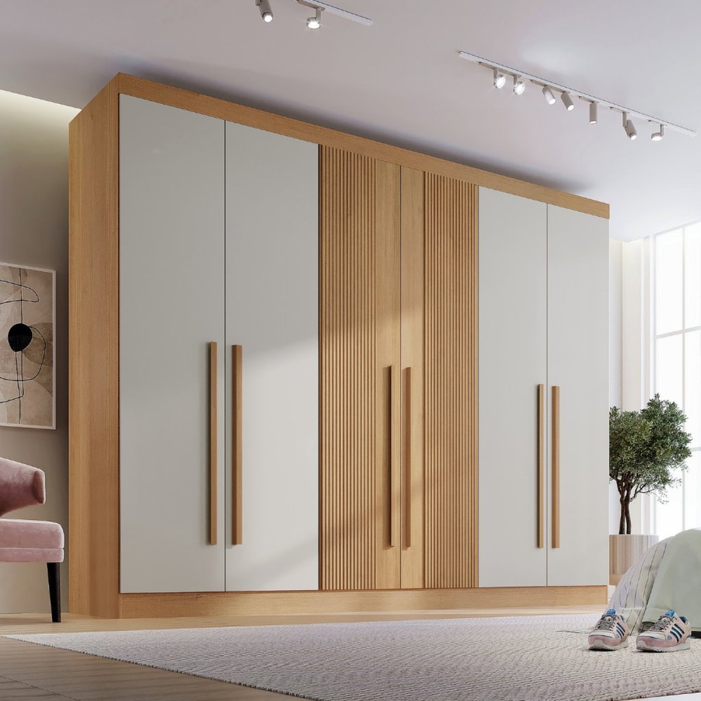 Guarda-roupa Casal MDF Ripado 6 Portas 6 Gavetas Paris Plus Cinamomo/Off White