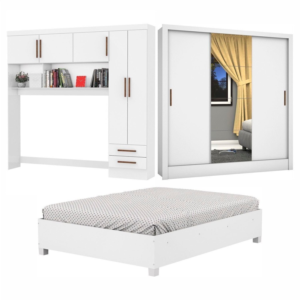 Guarda-roupa Casal Modulado 5 Portas com Cama Santiago 3 Portas Plus 5 Gavetas com Espelho Branco
