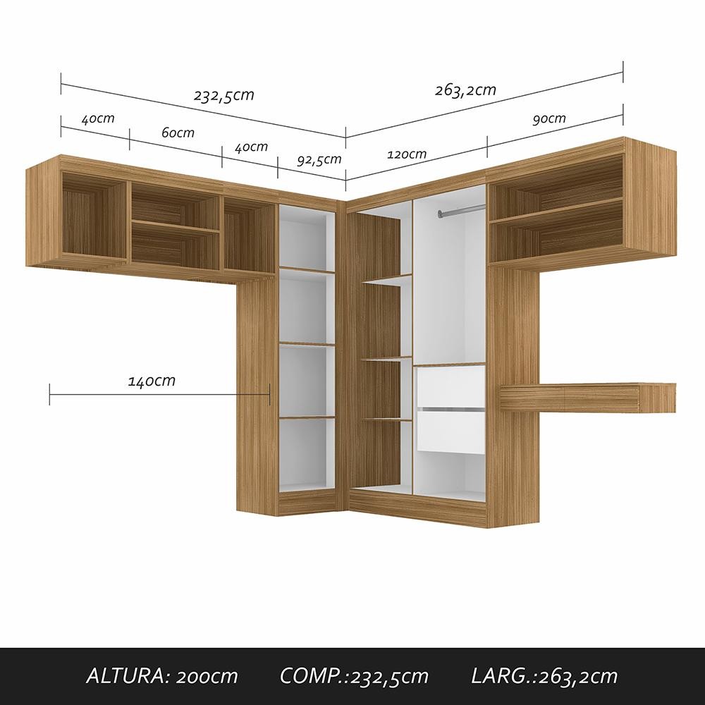 O Guarda Roupa Modulado Elsa une conforto e elegância, trazendo praticidade ao seu ambiente. Detalhes Técnicos: Medidas do Guarda-Roupa Montado: A: 200cm | C: 232,5cm | L: 263,2cm 2 MODULADO NICHO 1PT: A: 53,9cm | L:40cm | P:47cm 1 MODULADO NICHO 60cm: A:53,9cm | L:60cm | P:46,5cm 1 MODULADO CANTO RETO: A:200cm | L:91,5cm | P:51,6cm 1 MODULADO NICHO 90cm: A:53,9cm | L:90cm | P:46,5cm 1 ESCRIVANINHA SUSPENSA: A:15,3cm | L:90cm | P:34cm 1 GUARDA-ROUPA 4PTS: A:200cm | L:120cm | P:47cm Materiais de Fabricação: - Chapa MDP 15mm - Acabamento em FF (Finish Foil) - Cabideiros Alumínio - Puxadores em Alumínio - Tonalidade: Boreal/Preto - Estruturado com material de altíssima qualidade, evitando fungos e mofo Observações Importantes: - Imagens ambientadas meramente ilustrativas, objetos decorativos não compõe o produto; - Produto novo, garantia somente para defeitos de fabricação: 3 meses; - Não realizamos entregas em zonas rurais, via caminhos fluviais e distritos, NÃO ACEITAMOS CEP GERAL; - Não trabalhamos com entrega agendada. O recebedor deve ter mais de 18 anos. O valor do frete não inclui: subida de escada, elevador ou lançamento de produto, em condomínio residencial a entrega é feita somente até a portaria. As entregas são realizadas em dias e horários comerciais; - Ao receber o produto observe se a embalagem está em perfeita condição. Confira atentamente a quantidade de volumes; - Produto entregue desmontado. É responsabilidade do cliente a montagem/instalação do produto, inclusive despesa para sua realização. Recomendamos a contratação de um profissional especializado; - Evitar a exposição direta à luz solar e à umidade. Limpar com pano macio e seco, não utilizar produtos químicos; - A cor do produto pode variar de acordo com o monitor, a iluminação do ambiente ou sua percepção visual.