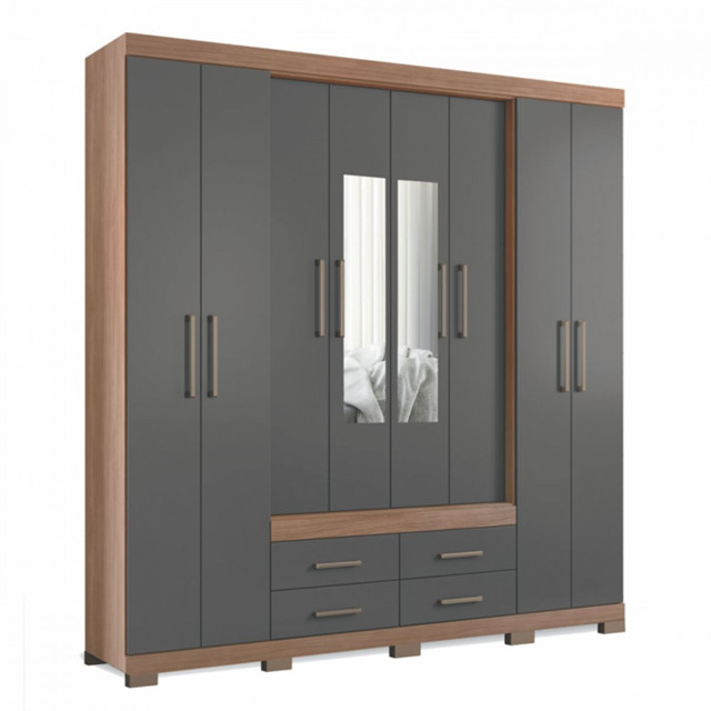 Guarda Roupa Casal Napoles 8 Portas 4 Gavetas Jatoba Grafite Com Espelho Santos Andirá